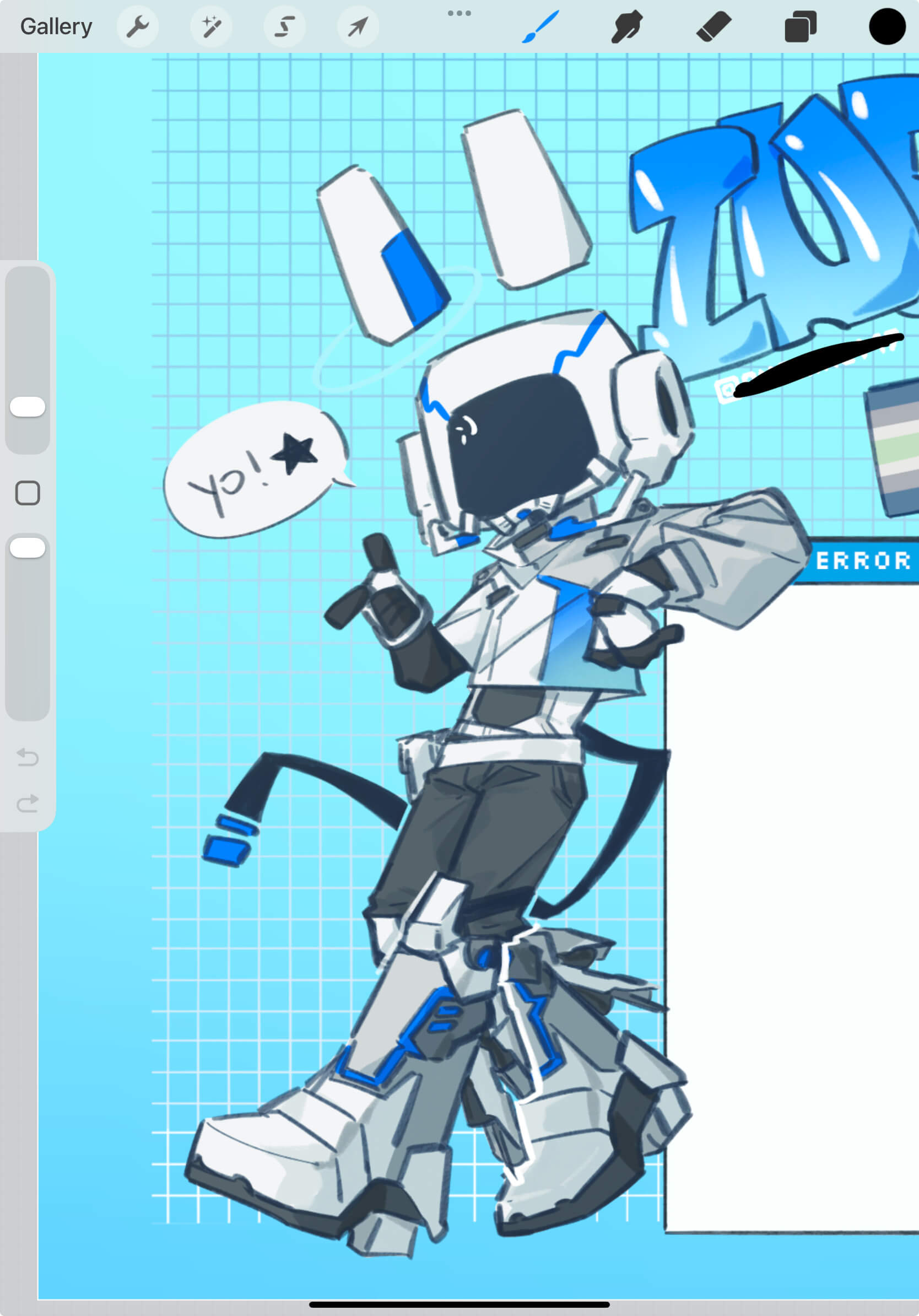 I wanted to use the design I did in the pinned art I have right now (close-up below). I ran this by Debs as well and upon hearing a mech body is easier to do than a human one, I went fuck it, I'll just redesign it (me?) to be fully mechanical. I can do that. It'll be cool.