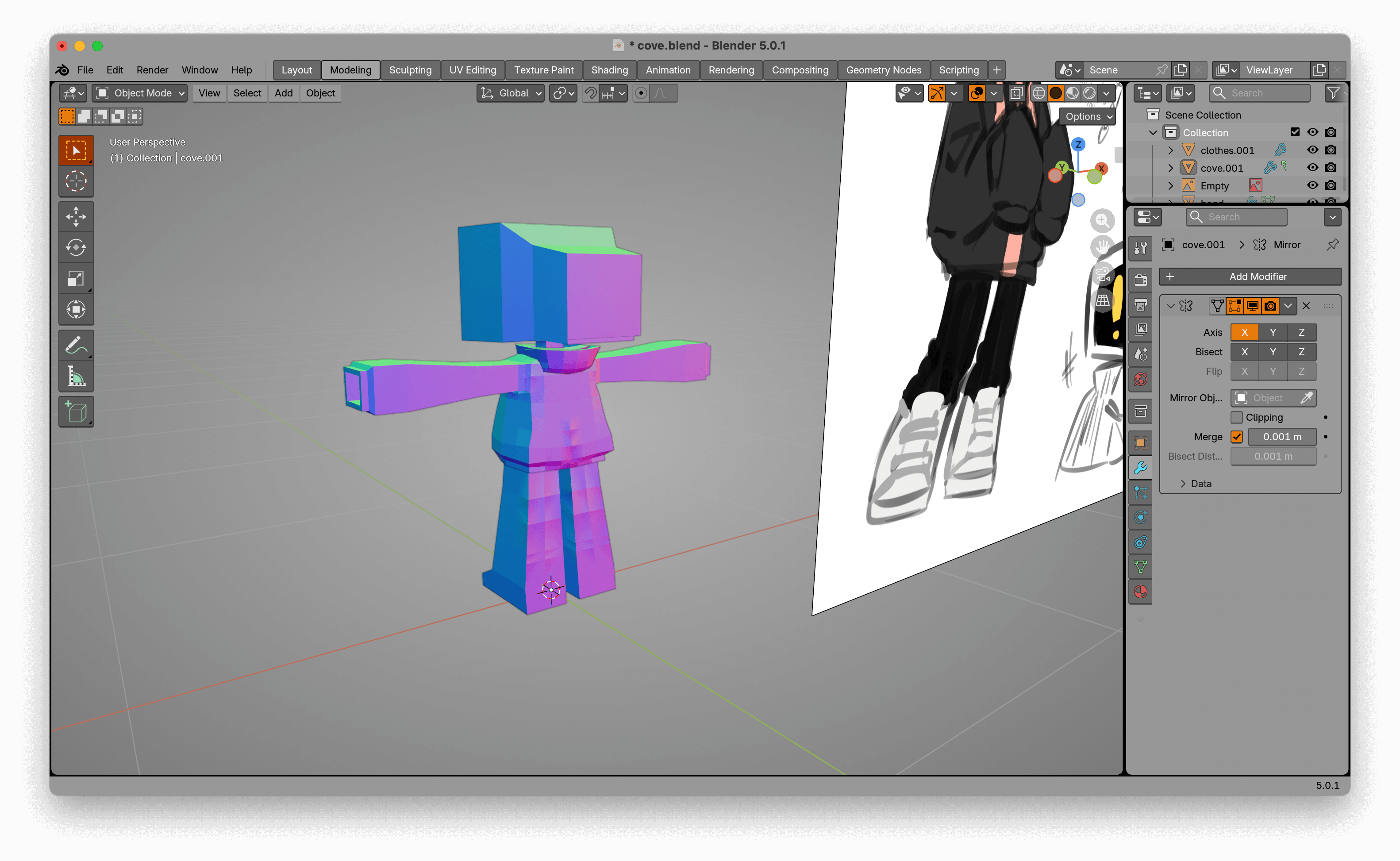 I could just end it there and begin texturing, but I wanted to try and make the creases of the pants at either the knees or above the shoes, or both if I can manage it. I haven't done this yet, but I learned how to do it. V to rip behaves really jankily and feels like forbidden knowledge. I don't know how it decides whether to cut out the top half or the bottom half, it seemed random to me. But that's a problem for another day.