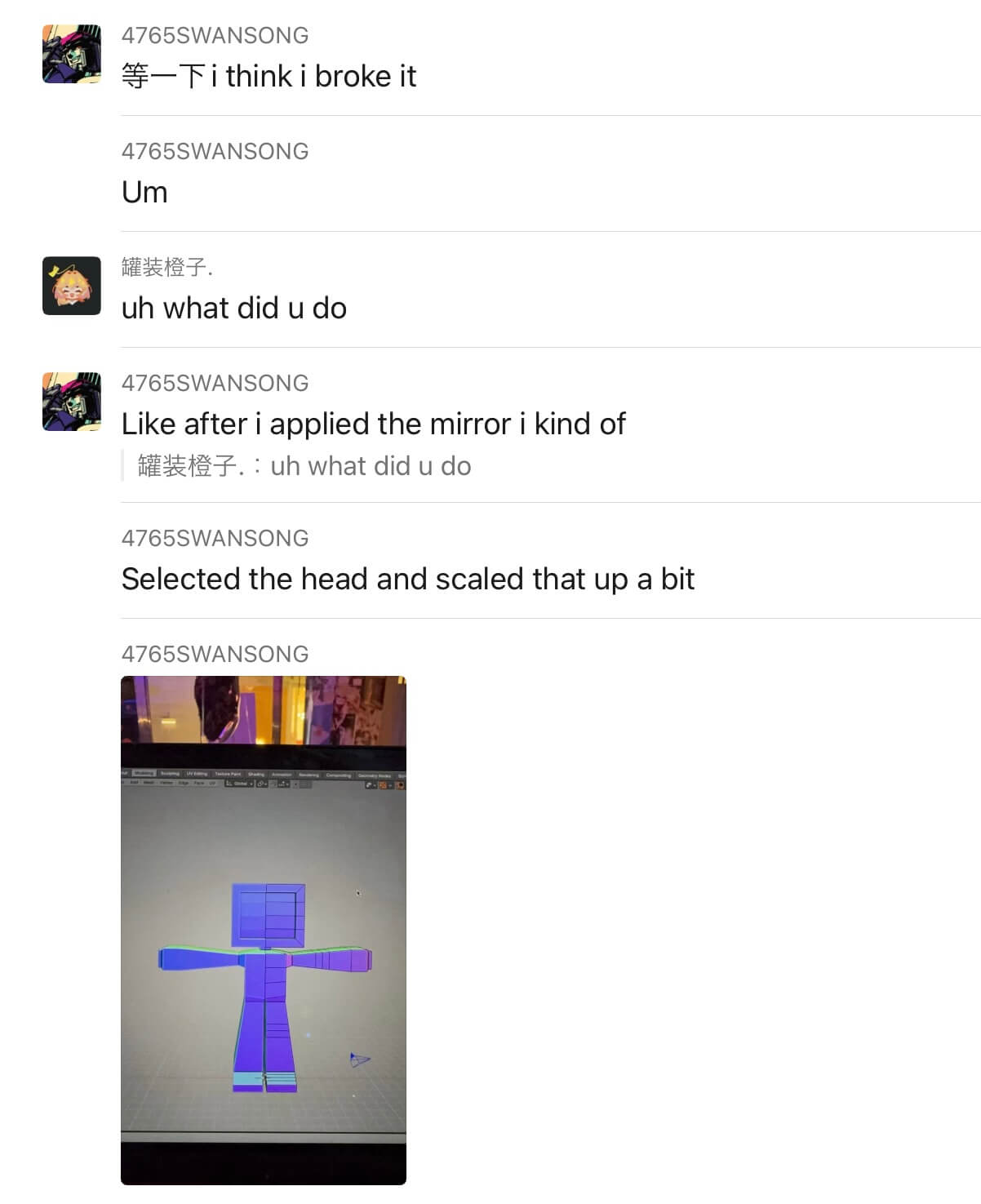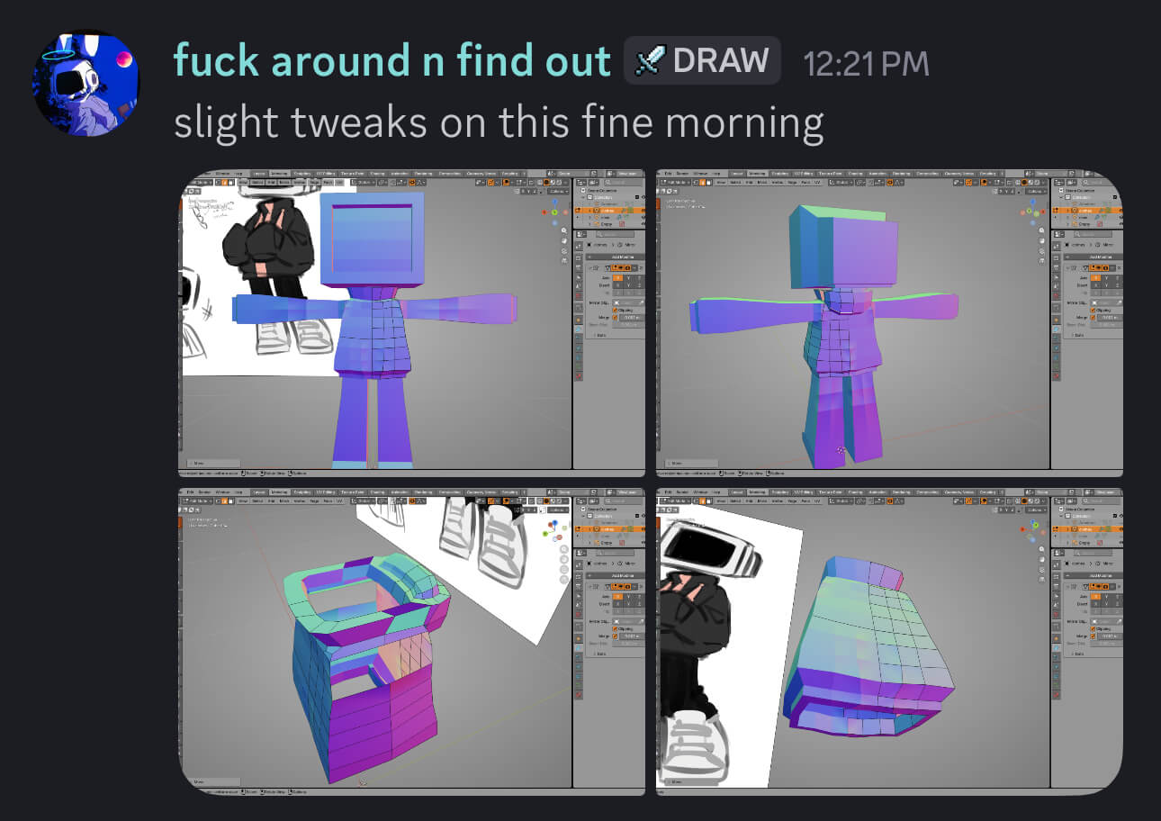 We ended the call after around two hours. I was going to put a screenshot of how the model looked then, but I apparently didn't take any... gahh I'll remember to do it next time I decide to write a log again.